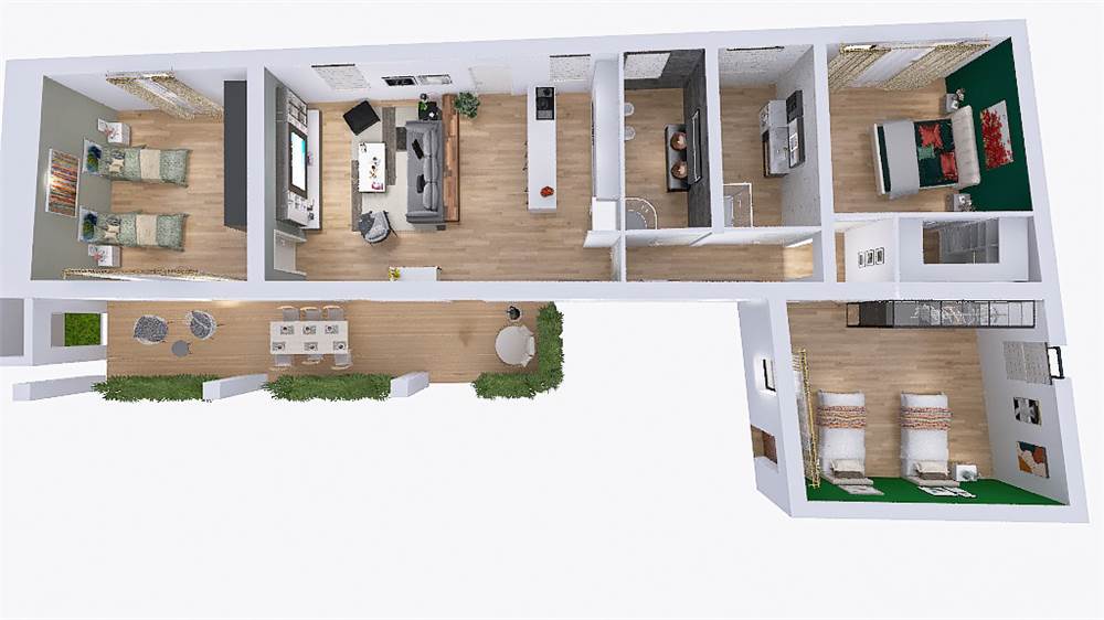 IDEALE PER FAMIGLIE NUMEROSE: Con 185 mq e tre camere da letto giganti, ognuno avrà il suo spazio. La zona giorno open-space è perfetta per i momenti di condivisione.