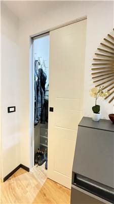 Ingresso Strategico: Ad accoglierti trovi un elegante ingresso dotato di un locale guardaroba a scomparsa, una soluzione intelligente per cappotti e scarpe che libera lo sguardo.