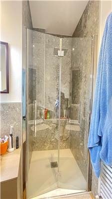 Secondo Bagno: Finiture moderne in pietra e ampi box doccia.