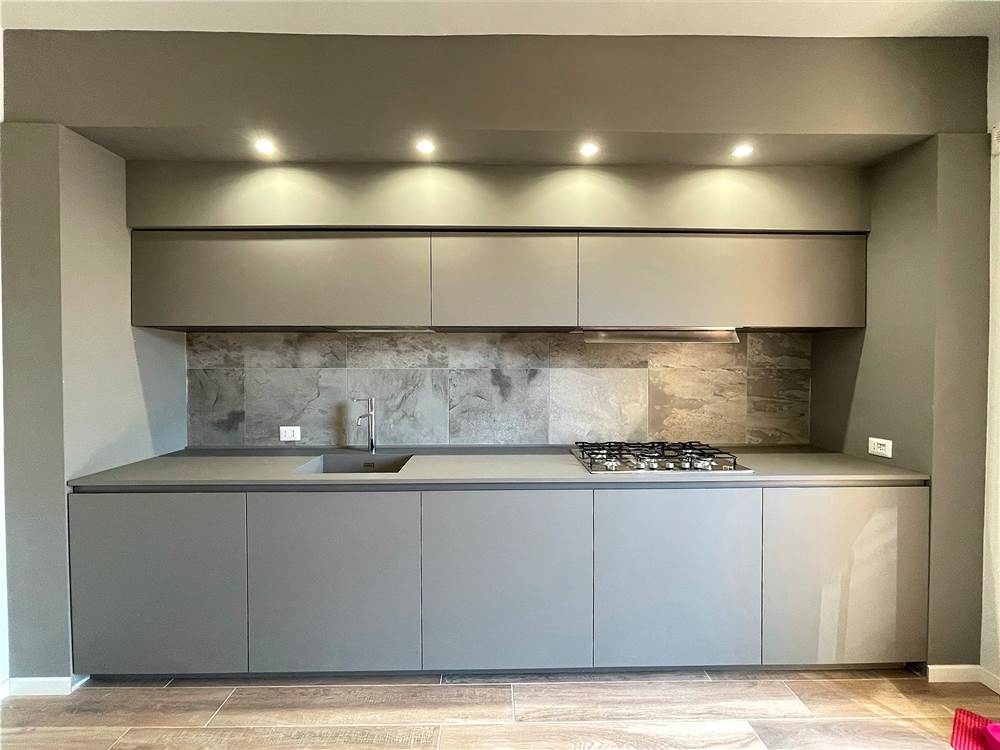 Cucina Abitabile di Design: Inclusa nel prezzo! Arredo completo della prestigiosa marca Arrital, interamente rivestita in Fenix, materiale innovativo e ultra-resistente color grigio tortora. Un ambiente funzionale e di grande eleganza.